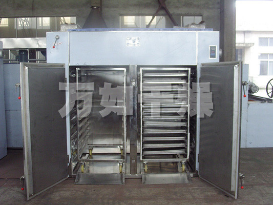 | 型号规格 | 每次干燥量(kg) | 风机功率(kw) | 耗用蒸气(kg/h) | 烘车((辆)(set) | 烘盘(只) | 宽×深×高(mm) | 上下温度(℃) |