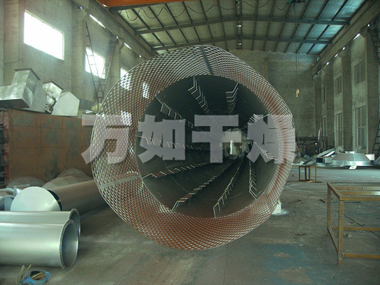 湿物料从干燥机一端投入后,在内筒均布的抄板器翻动下,物料在干燥器内均匀分布与分散,并与并流(逆流)的热空气充分接触,加快了干燥传热,传至推动力。在干燥过程中,物料在带有倾斜度的抄板和热气流的作用下,可调控地运动至干燥机另一段星形卸料阀排出成品。