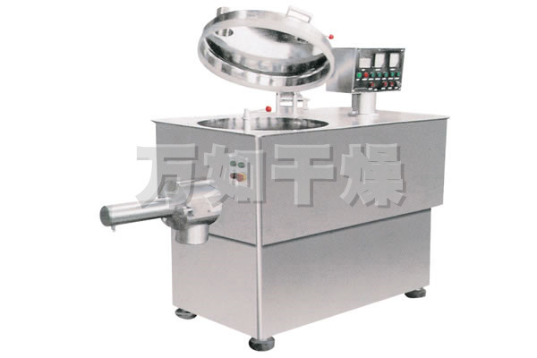 粉体物料与粘合剂在圆筒形容器中由底部混合浆充分混合成湿润软材,然后由侧置的高速粉碎桨切割成均匀的湿颗粒。