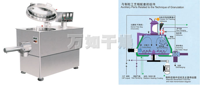 ◎在同一封闭容器内完成,干混-湿混-制粒,工艺缩短。