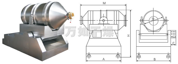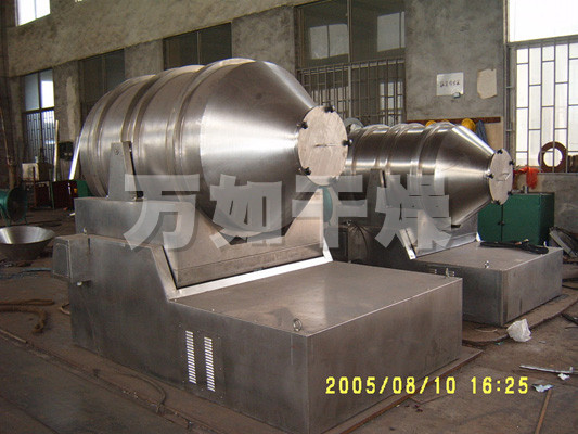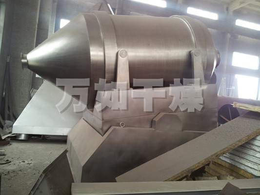 EYH二维混料机的转筒可同时进行二个运动,一个为转筒的转动,另一个为转筒随摆动架的摆动。被混合物料在转筒内随转筒转动、翻转、混合的同时,又随转筒的摆动而发生左右来回的掺混运动,在这两个运动的共同作用下,物料在短时间内得到充分的混合。EYH二维混料机适合所有粉、粒状物料的混合。