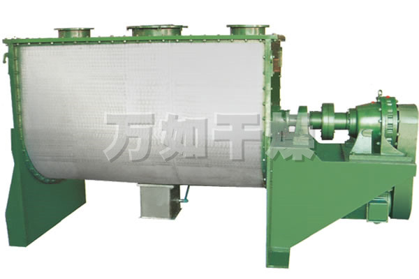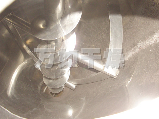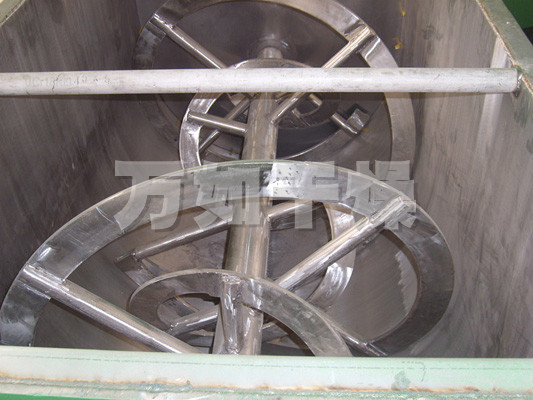 该机型由容器、螺旋搅拌叶片和传动部件组成:螺旋叶片一般做成双层或三层,外层螺旋将物料从两侧向中央汇集,内层螺旋将物料从中央两侧输送,形成对流混合。