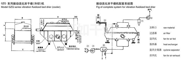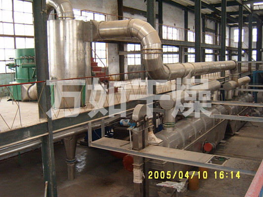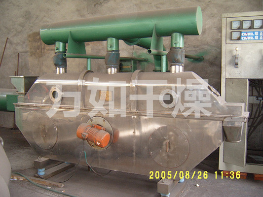 After importing the material from the feed into the machine, in the vibrating force, the material along the horizontal fluid bed throw, continuous forward motion, after hot air upward through the fluidized bed heat exchanger with wet material, wet air through the cyclone dust discharge 3: 1 from the exhaust. Dried material is discharged from the discharge imports.