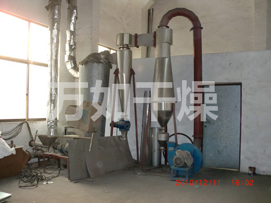 From easy-to-air drying dehydrated granules, powder materials, the rapid removal of water (mainly surface water). In air drying, since the material in the dryer residence time is short, so that the quality of the finished product was dried to give the best control. I plant Enhanced air drying is to increase the set speed can be adjusted steplessly strengthening composed in basic, the wet material into strengthening through the screw feeder and after hot air well mixed, rapid rotation of the crushing blow knife and propulsion , the material is crushed into fine particles, while moving towards the exit in the dry, and finally into the drying tube in the wind, attracted by the more uniform drying. Wet wind can not attract heavier particles continue to be crushed, dried, until the wind can be sucked up into the drying tube.