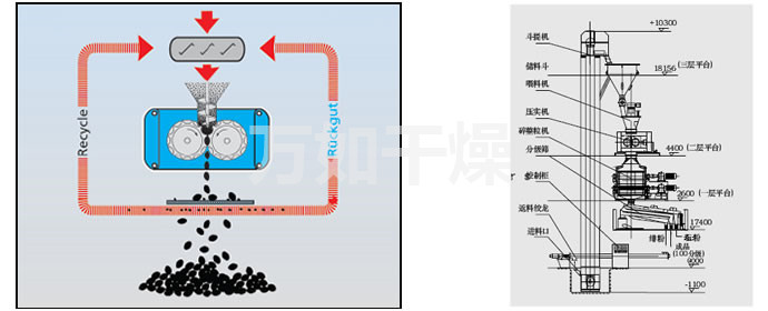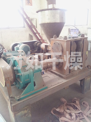 Process principle of roller extrusion granulation are: dry material under pressure into a dense agglomeration of hard chunks (cake material), known as the extrusion process; cake feed pellets again become known as made after crushing and screening granulation process. First, the effect of squeezing the air between the particles squeezed out, the other is to make the distance between particles nearly enough to produce such as van der Waals force, adhesive force, and an embedded crystal bridge connections attraction. Extrusion granulation particles mainly by intermolecular force between the particle strength of the formation.