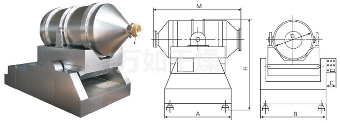 EYH dimensional mixer drum can be two sports at the same time, as a rotating drum, the drum with the other is swinging the swing frame. Are mixed with the material drum in the drum is rotated, flipped, while mixing with the drum swinging back and forth about blending movement, under the combined effect of these two movements, the material is fully in a short time mixing. EYH dimensional mixer for mixing all powder, granular materials.
