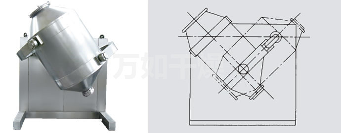 Filled cylinder driven by the drive shaft, as the cycle of translation, rotation and tumbling and other complex motion, which makes the material along the cylinder for three to complex sets of sports, in order to achieve mutual flow of a variety of materials, diffusion, accumulation, doping. In order to achieve uniform mixing purposes.